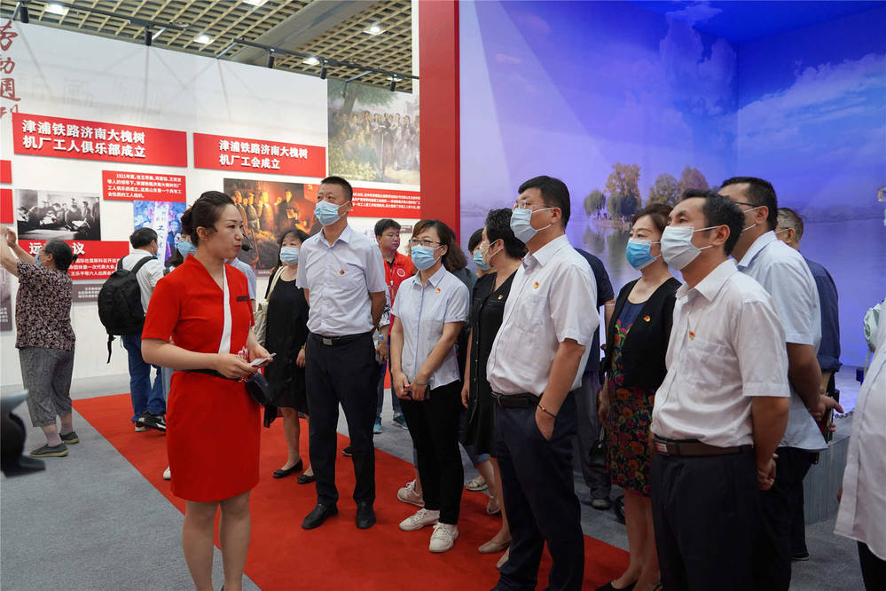 ? 展覽中有許多文物和場(chǎng)景再現(xiàn),最早的《共產(chǎn)黨宣言》中譯本、中共一大代表群像雕塑、濟(jì)南共產(chǎn)黨早期組織活動(dòng)照片、濟(jì)南戰(zhàn)役攻城復(fù)原場(chǎng)景、抗美援朝戰(zhàn)爭(zhēng)現(xiàn)場(chǎng)照片、20世紀(jì)六七十年代濟(jì)南工廠廠牌、改革開放時(shí)期濟(jì)南市民真實(shí)生活場(chǎng)景、社會(huì)主義現(xiàn)代化下的經(jīng)濟(jì)發(fā)展成果照片等等,通過講解員的講解和實(shí)物再現(xiàn),讓在場(chǎng)的黨員感受黨的百年征程和輝煌成就。