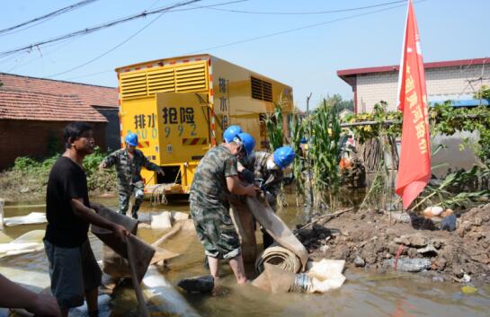 因水中有雜物及排水區(qū)域不集中,隊員們在散發(fā)著惡臭的污水中,不斷變換排水管位置。為爭分奪秒早日打贏這場搶險攻堅戰(zhàn),黃河路橋搶險隊分成三個小組,4小時一班輪流值守,連續(xù)奮戰(zhàn),堅守?fù)岆U一線。經(jīng)過一天一夜強排水,西神壇村水澇解除。