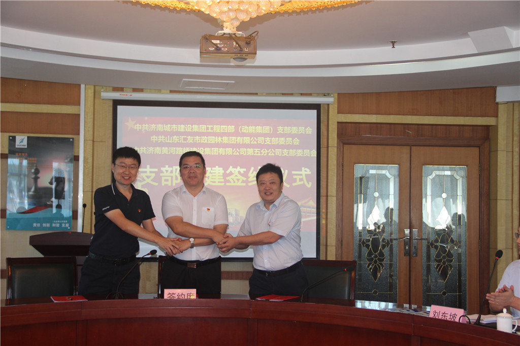 ? 為深入貫徹習(xí)近平新時(shí)代中國(guó)特色社會(huì)主義思想和黨的十九大精神,推進(jìn)全面從嚴(yán)治黨在基層走深走實(shí),著力構(gòu)建基層黨組織互幫互助常態(tài)化、長(zhǎng)效化機(jī)制,形成優(yōu)勢(shì)互補(bǔ)、共同提升的基層黨建工作新格局,濟(jì)南城市建設(shè)集團(tuán)工程四部黨支部、濟(jì)南黃河路橋五分公司黨支部、山東匯友市政園林黨支部于2020年9月17日下午在十六里河辦公樓7樓會(huì)議室舉行支部共建簽約儀式。濟(jì)南城市建設(shè)集團(tuán)工程四部部長(zhǎng)杜連平、濟(jì)南城建集團(tuán)副總經(jīng)理史紅軍、濟(jì)南黃河路橋建設(shè)集團(tuán)黨委副書(shū)記、常務(wù)副總經(jīng)理王國(guó)軍、總會(huì)計(jì)師王琳及各支部委員參加了本次簽約儀式。